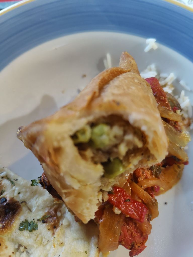 This is meat. I’m eating naan AND a samosa. YOUR free to do as you like.