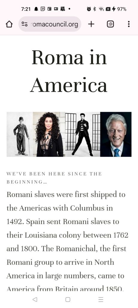 I wonder more about the Romani American experience or about the Romani migration to India…Spain.. There were Romani slaves in America. They lived amongst the African slaves “from what I remember.”romacouncil.orgFlamenco in Spain.There are Romani populations in New England ASWELL as W.A.S.P.’s. Most descendants of freed African slaves went “up North” as well…🧭 KING JESUSCHRIST is myNorthstar and KING.The Anglican church is the Episcopal church or Episcopalian CHURCH? Let me see.
